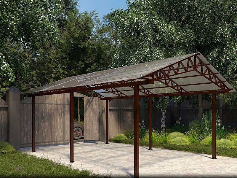 Поэтому компания "Навес Строй" настоятельно рекомендует не экономить, а усилить каркас двускатного навеса более жёсткими профилями с увеличенной толщиной металла и количеством несущих ферм.
