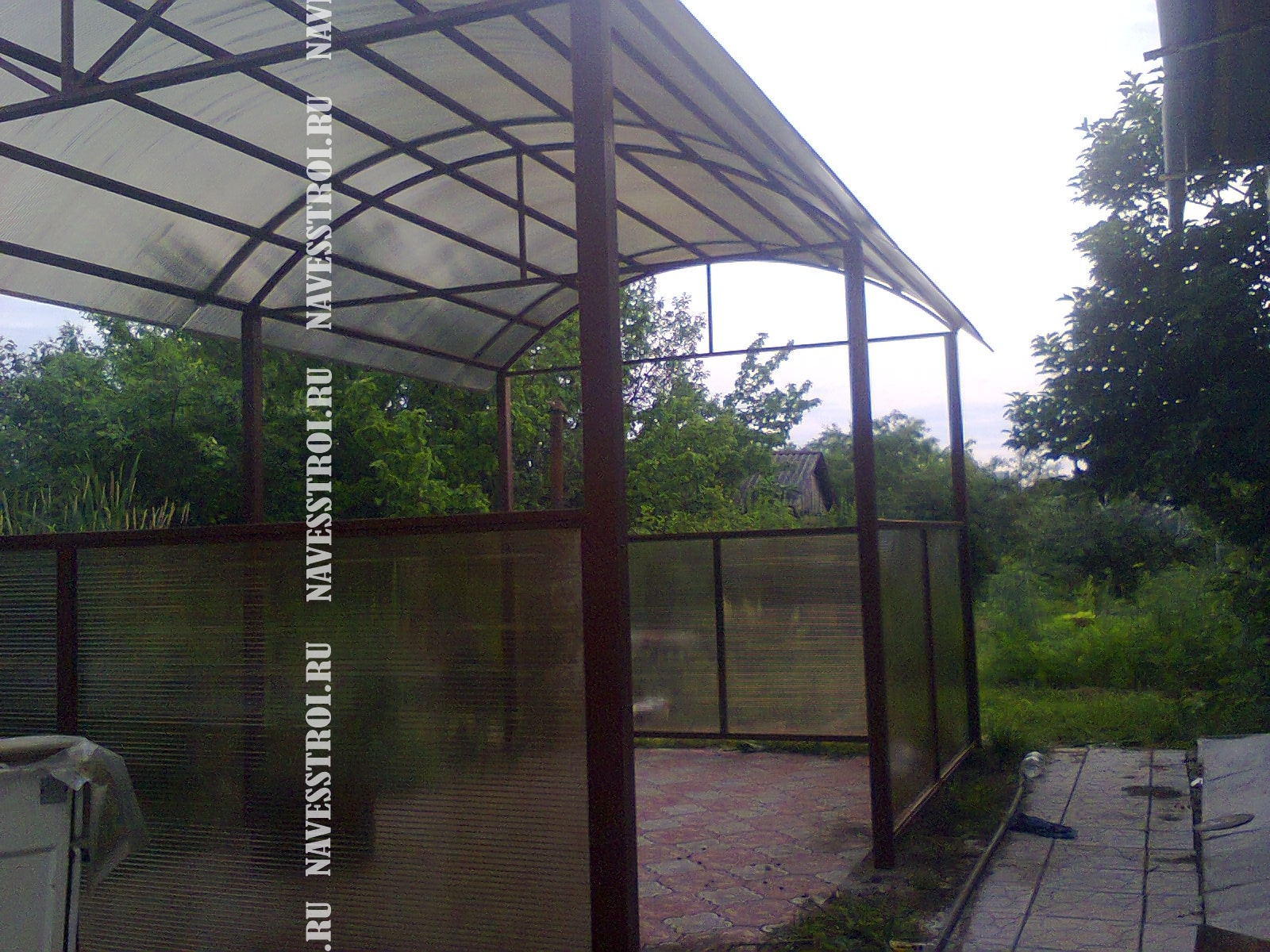 За день на даче изготовили арочный навес 5 на 7 с покрытием поликарбоната. Привезли уже готовые крашенные фермы и весь остальной материал. Все за собой убрали и увезли мусор. Молодцы!