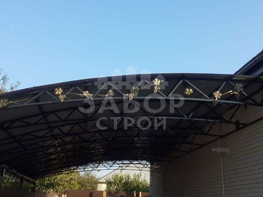 Поэтому компания "Навес Строй" настоятельно рекомендует не экономить, а усилить каркас полуарочного навеса более жёсткими профилями с увеличенной толщиной металла и количеством несущих ферм.